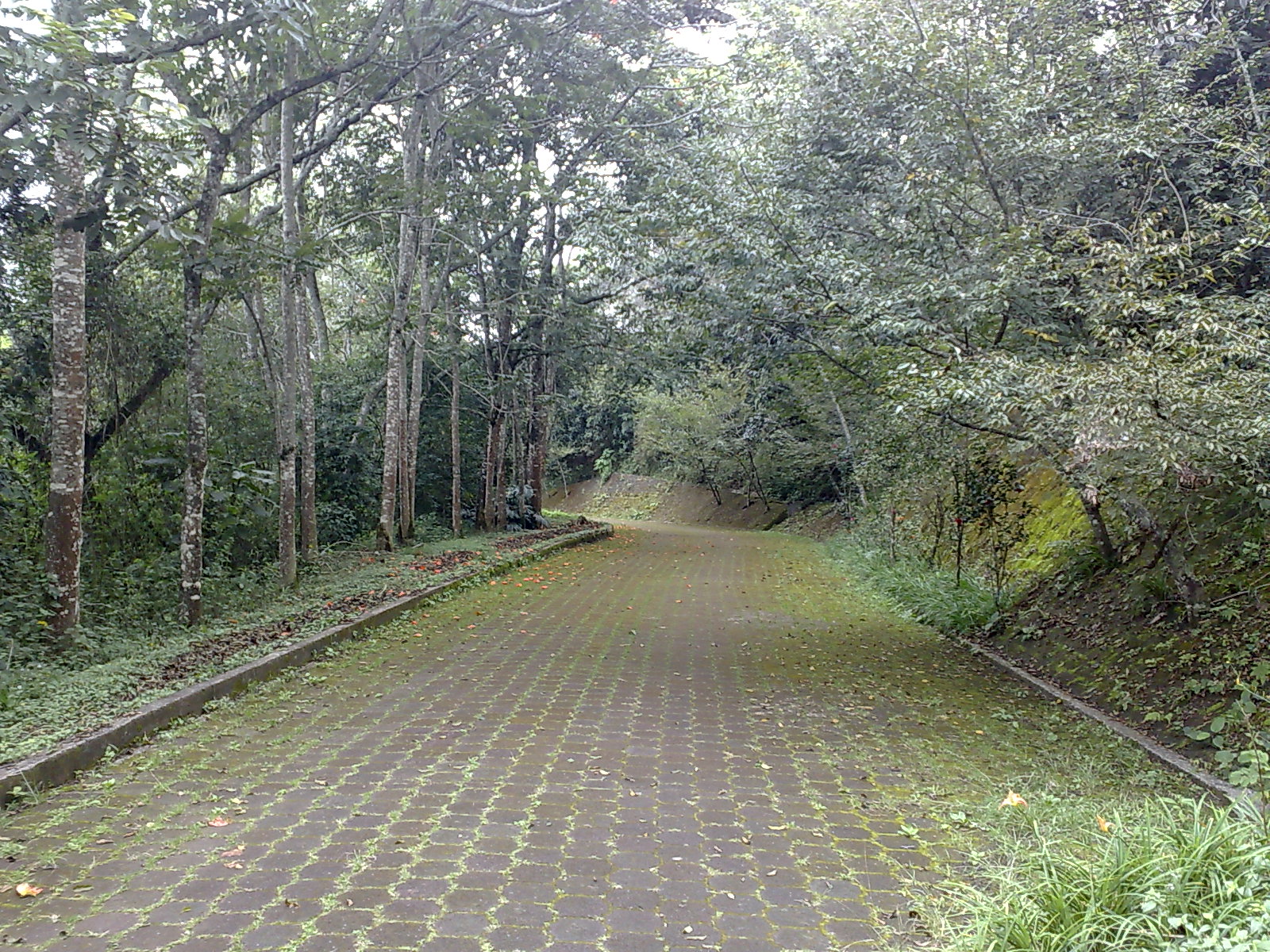 Hermoso y humedo Camino Rodeado De Árboles, Arbustos e Insectos.